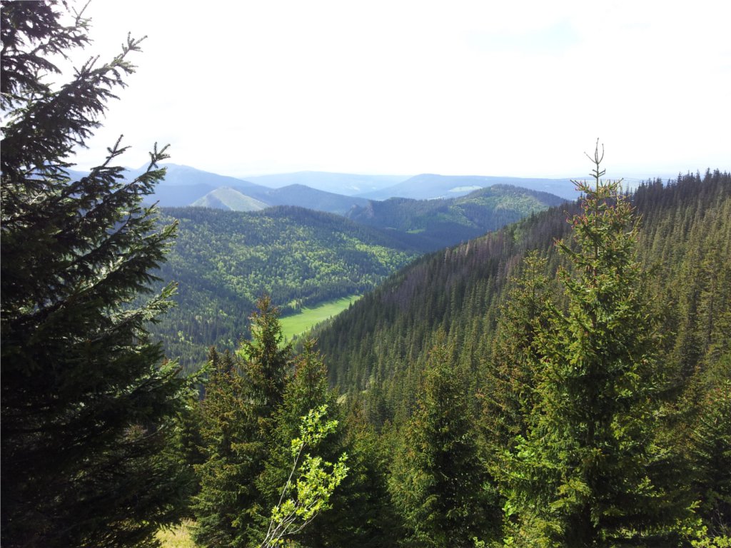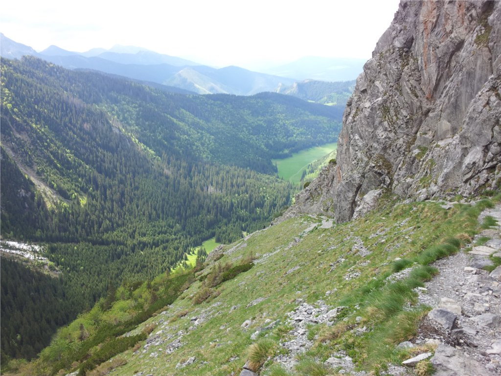 Po przejściu polany zaczynamy wspinaczkę po żlebie. Początkowo szlak wiedzie przez las kamiennymi stopniami, później coraz więcej kamiennych osuwisk i trzeba zachować ostrożność. Za naszymi plecami rozciągają się coraz piękniejsze widoki na polanę. Po wejściu w pas kosodrzewiny trasa staję się coraz bardziej męcząca. Niewiele widać a trasa wydaje się nie mieć końca. Droga z Polany Małołąckiej na Przełęcz Kondracką zajmuje 2h. Stamtąd już tylko 15 min na szczyt Giewontu. Z przełęczy możemy też odbić na Konracką Kopę (0:45h) pierwszy szczyt Czerwonych Wierchów.