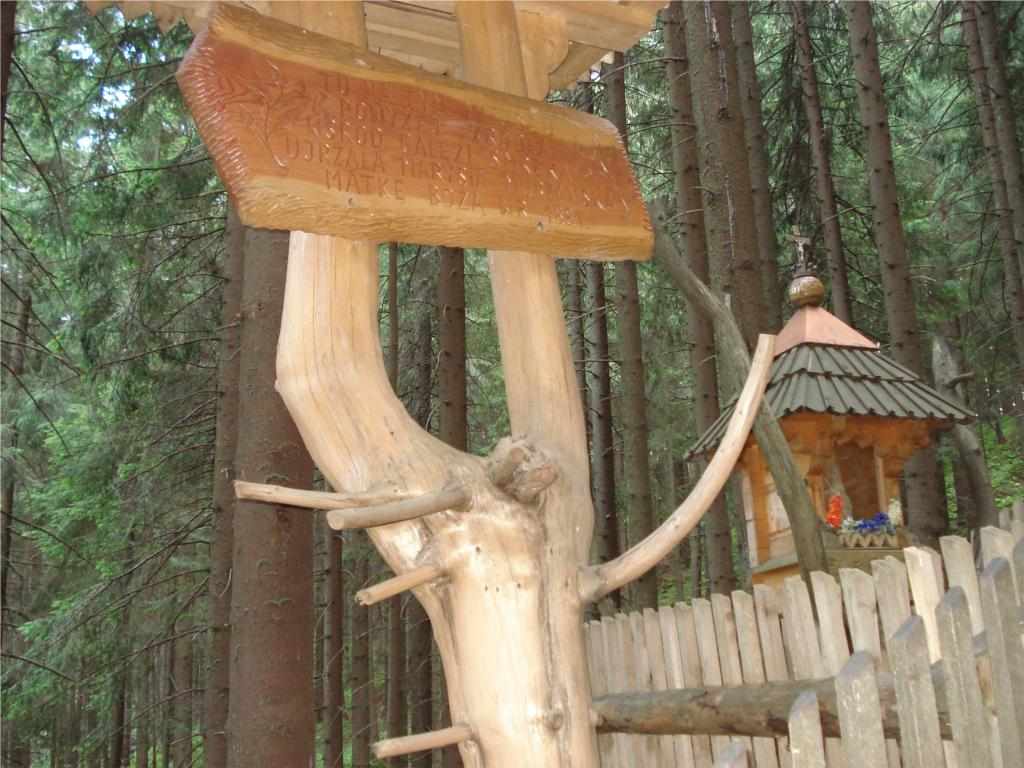 Początkowo przed zawieszonym obrazkiem przychodzili modlić się okoliczni pasterze i górale, którzy na początku zastąpili papierowy obrazek, obrazkiem malowanym na szkle a później zbudowali niewielką kapliczkę i umieścili w środku figurkę Matki Bożej. Obecnie drewniana figurka znajduje się na ołtarzu sanktuarium a kapliczka na zewnętrznej ścianie obecnej kaplicy. A na miejscu gdzie Marysia miała widzenie umieszczono pamiątkową tablicę.