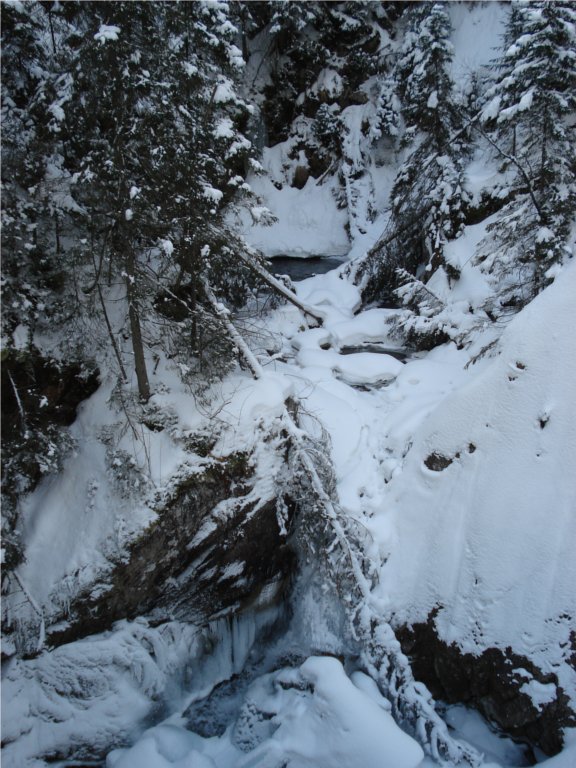 Po drodze mijamy Wodogrzmoty Mickiewicza, które w lecie słychać z oddali z powodu huku jaki wywołuje spadająca woda. Zimą w większości wodospad jest zamarznięty i spływa tam jedynie niewielki strumyczek wody, reszta zamarznięta tworzy przyjemne dla oka formacje. Wodospad tworzą trzy większe kaskady o wysokości od 3 do 10m (Wyżni Wodogrzmot, Pośredni Wodogrzmot i Niżni Wodogrzmot).